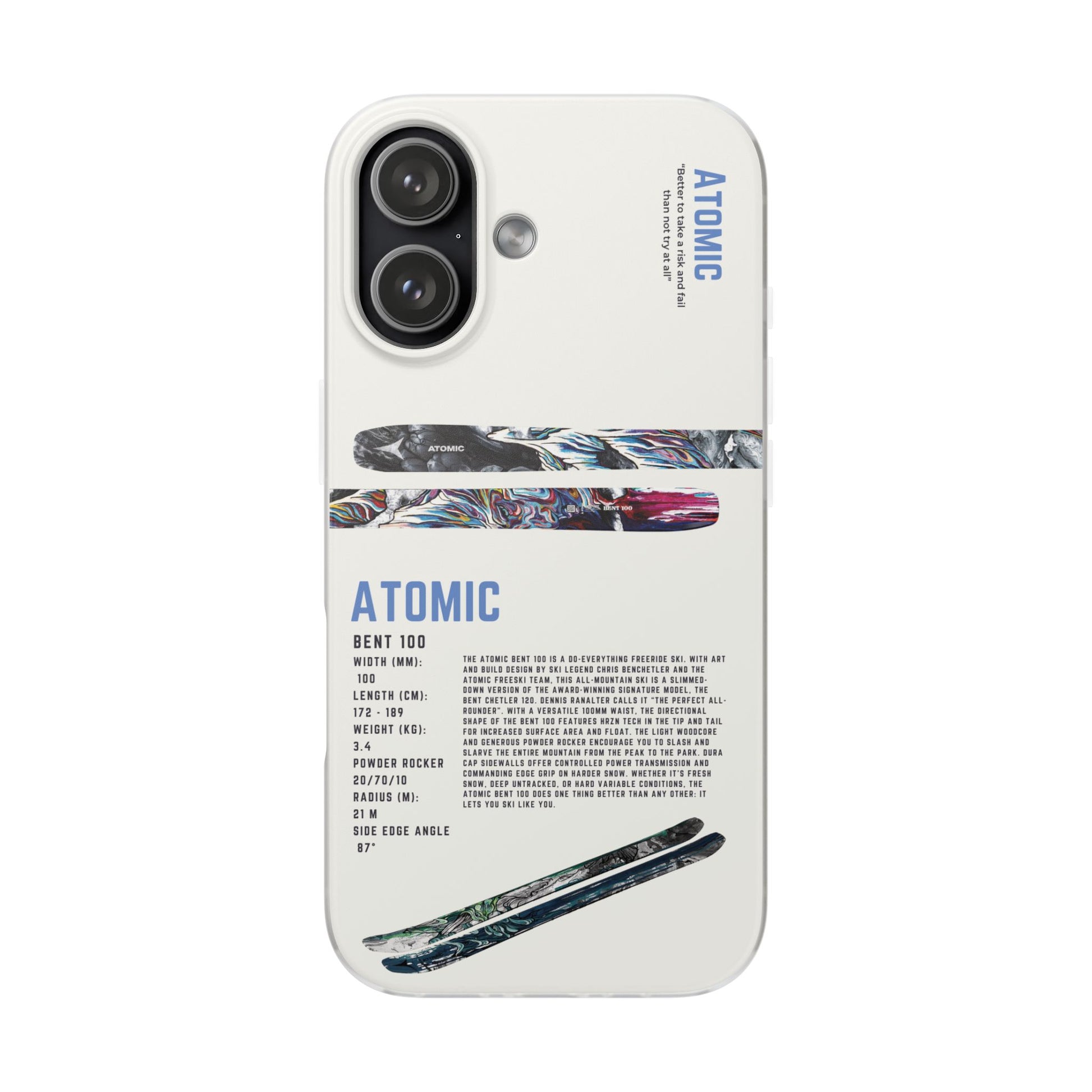 Show off your love for skiing with this exclusive phone case, inspired by the sleek designs and vibrant graphics of modern skis. Whether it’s bold colors, minimalist patterns, or intricate ski details, this case captures the spirit of the slopes and brings it to your everyday routine.